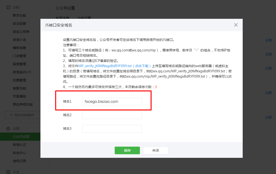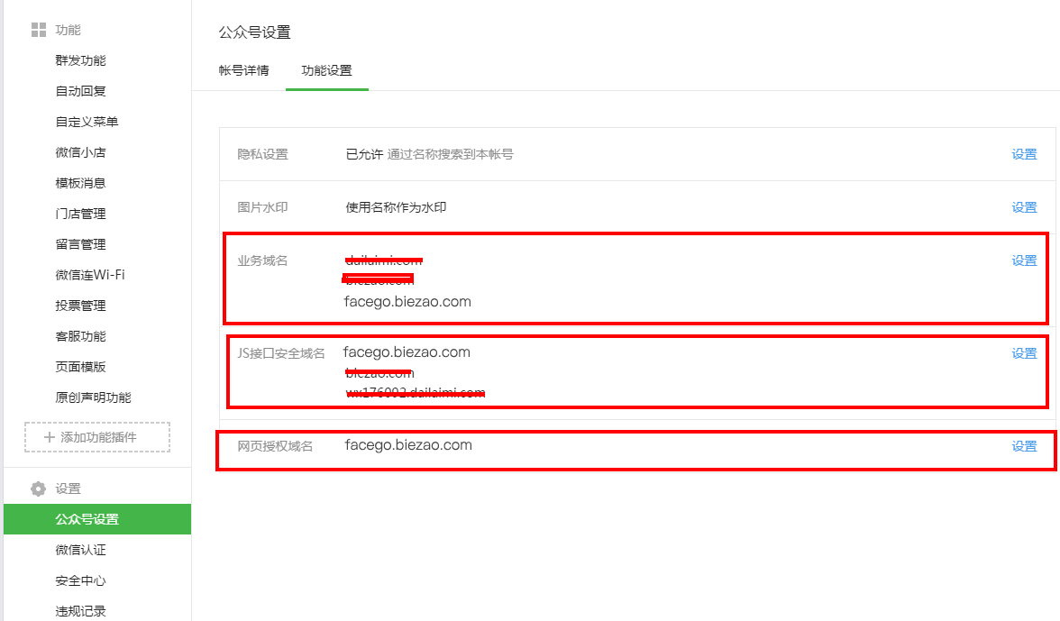 完善(业务域名)(JS接口安全域名)(网页授权域名)内容