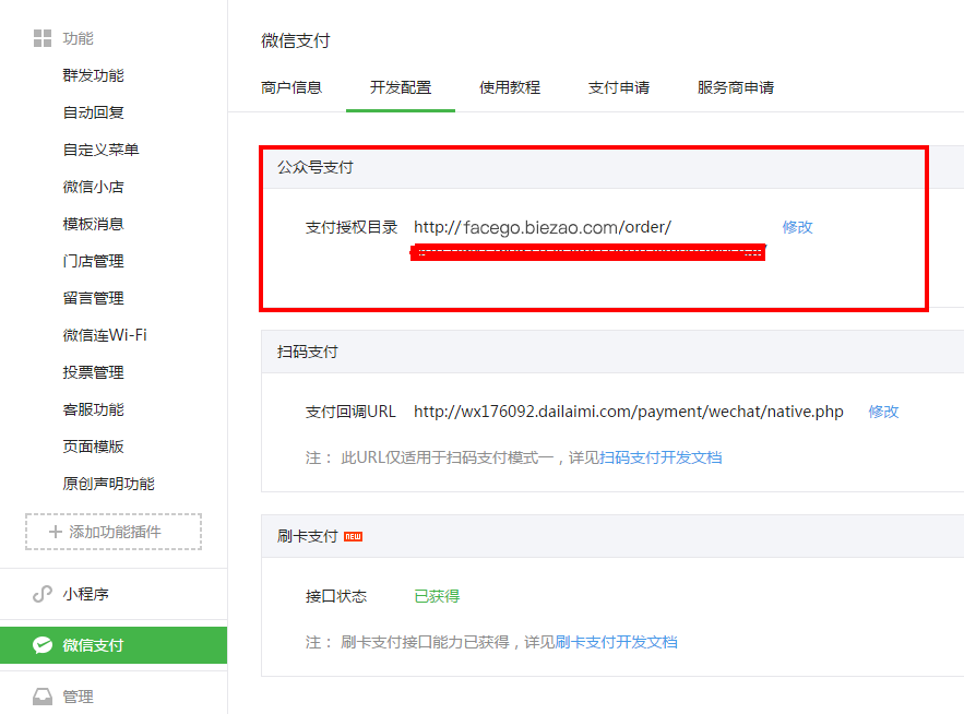10.支付授权目录 选择http:// 填入facego.biezao.com/order/