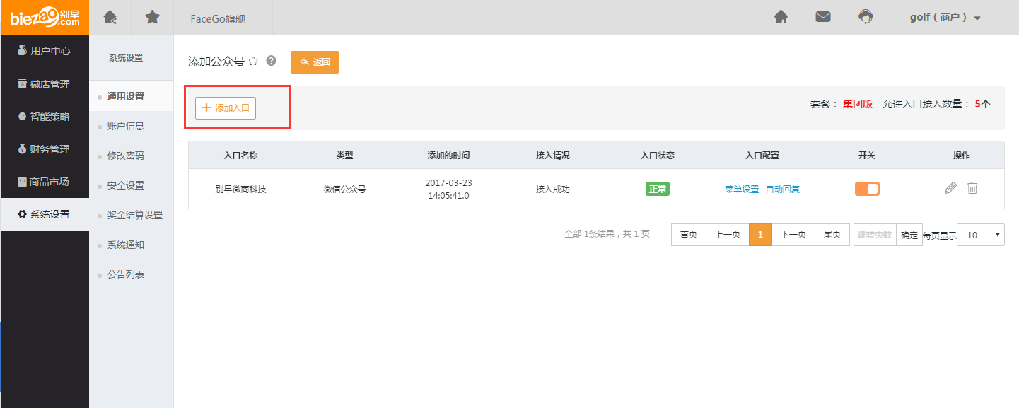 1、别早后台- 系统设置 - 通用设置 - 添加公众号 - 添加入口,