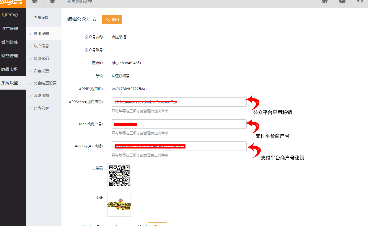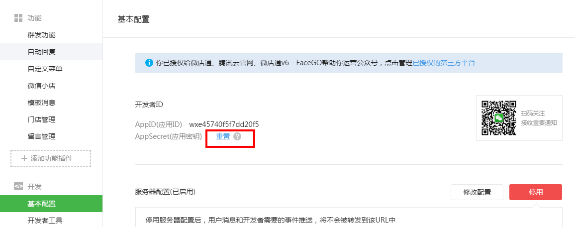 12.然后打开别早facego后台 通用设置》添加公众号,进入设置参数