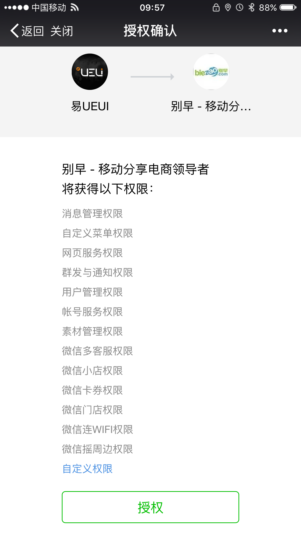 2. 为保证您在别早的正常使用,授权时请保持默认选择,把权限统一授权给别早。