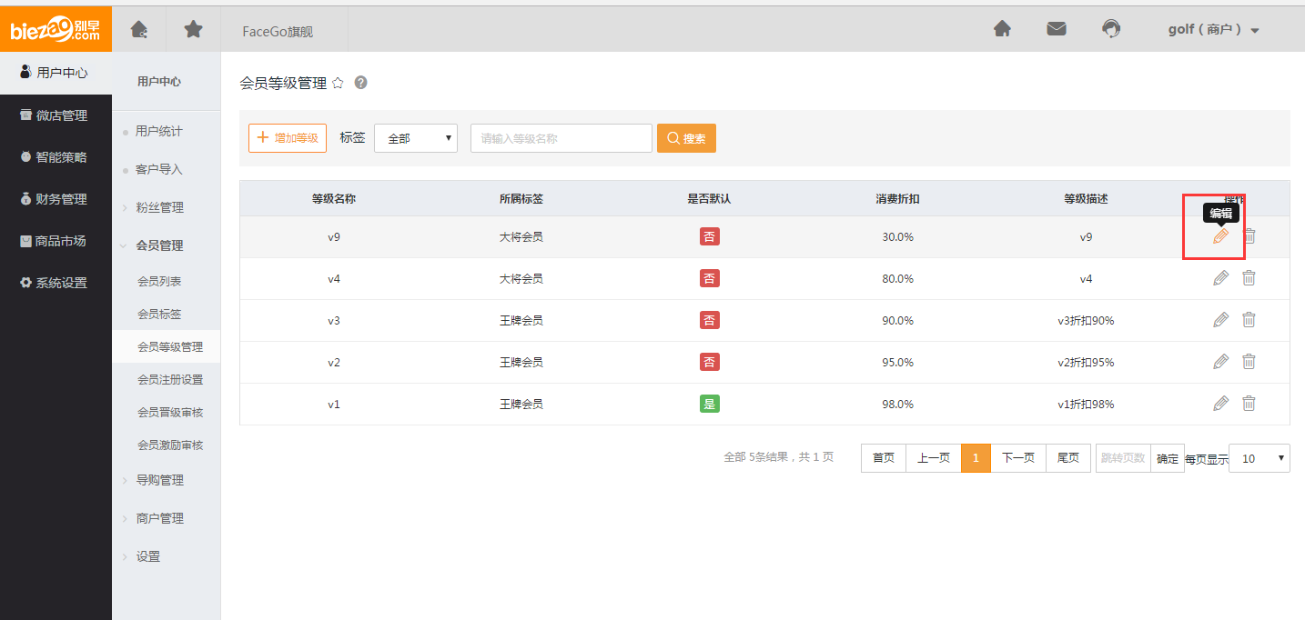 首先需要去用户中心添加一个角色等级,路径(用户中心 - 会员等级/导购等级/单位等级 - 增加等级)