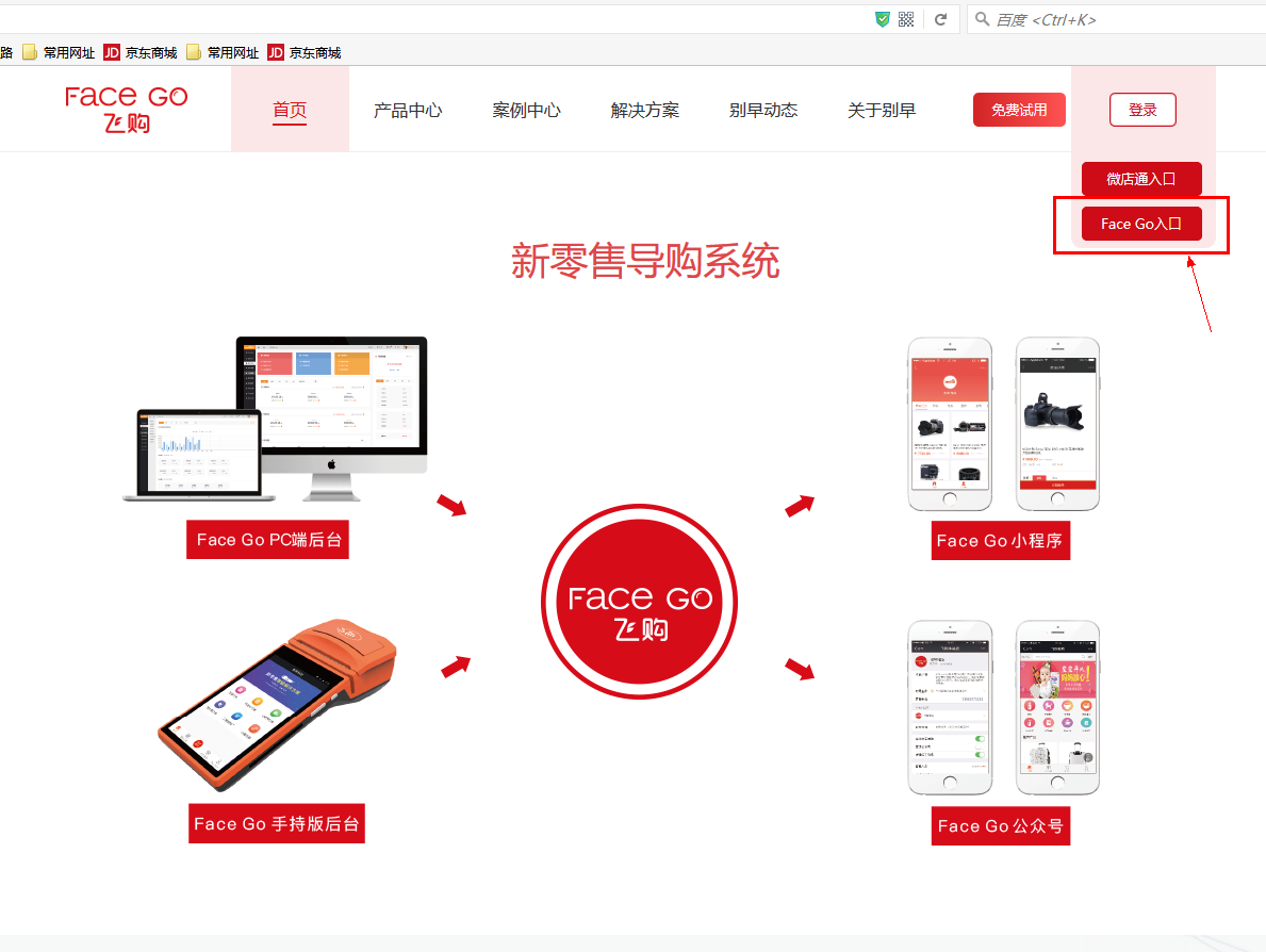 第一步 打开Face Go官网网址:www.biezao.com,右上角点击“登陆”,选择“face go”入口;