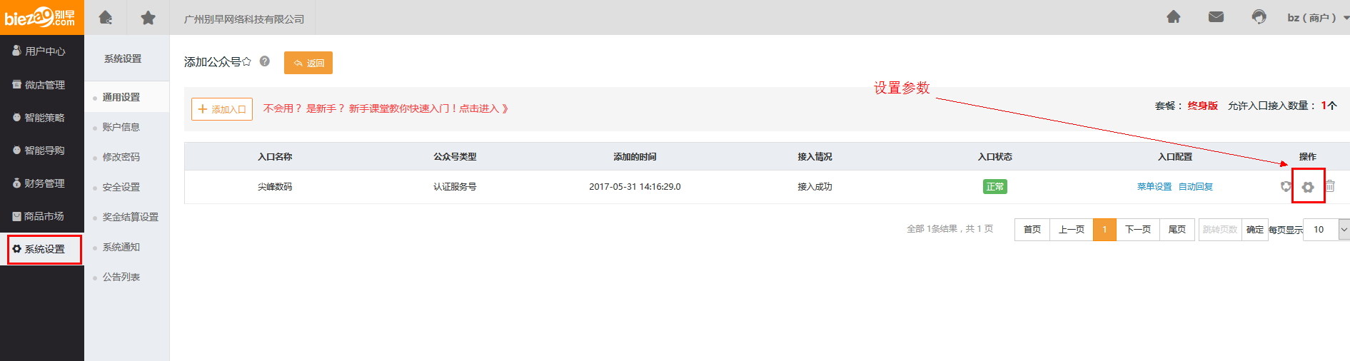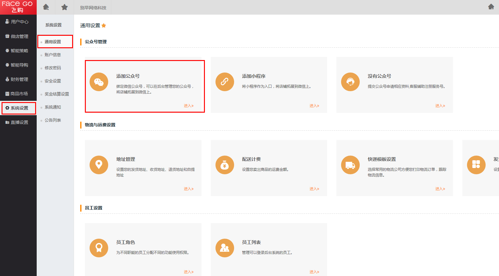 第三步 打开系统设置 -> 通用设置 -> 添加公众号