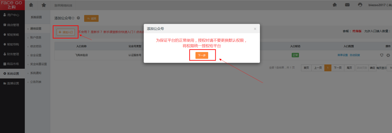 第四步 点击【添加入口】根据系统提示点击【下一步】