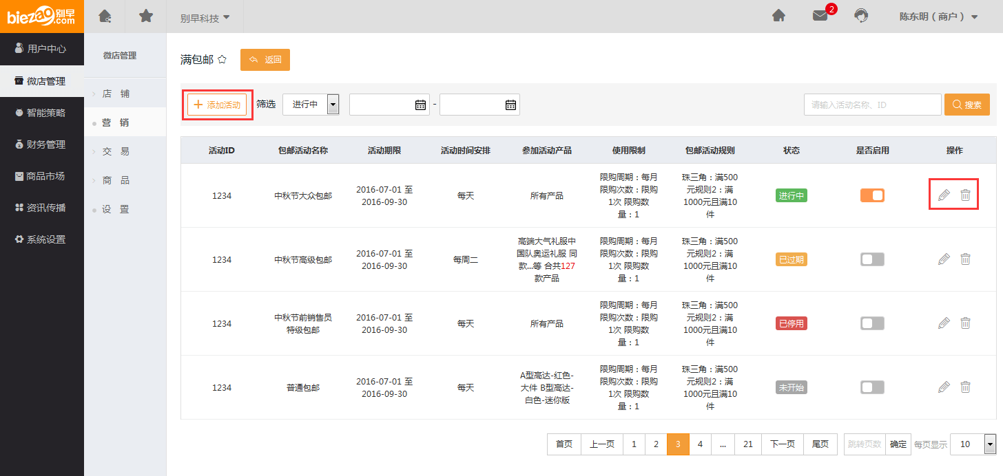 第一步 选择【阶梯单价】,点击【添加活动】创建一个优惠活动,或者在已经创建的基础上【编辑】本次活动信息,如下图: