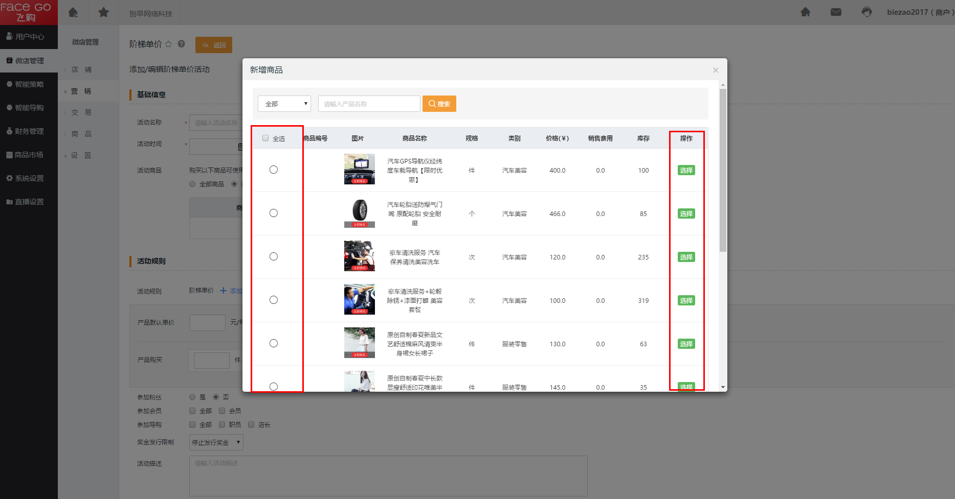 可以选择【新增商品】,进行筛选商品添加,如下图: